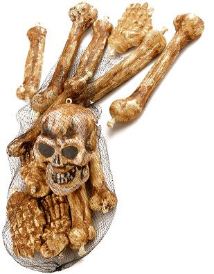 It will appear as though you have skeletal remains in your home with our Bag of Skeleton Bones. This deluxe 13-piece bag of bones is a scary decoration prop that is horrifically perfect for achieving a haunted house look for Halloween time. Our Bag of Skeleton Bones will make the perfect finishing touch for any Halloween horror theme within your decor. Skeleton decoration props are always cool, but our deluxe set is even better with the yellow and brown decaying look on each piece. You can keep them in the included netted back to hang out on the 'deck' of your pirate ship themed house or spread them over your lawn for a haunted house graveyard or arrange for a murder mystery scene.Available at Amazon