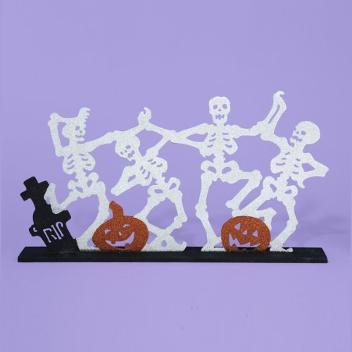 Skeletons and jack-o-lanterns are embellished with iridescent glitter