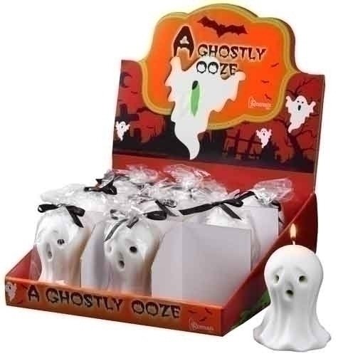 When lit, each ghost candle will "ooze" green wax from its eyes and mouth