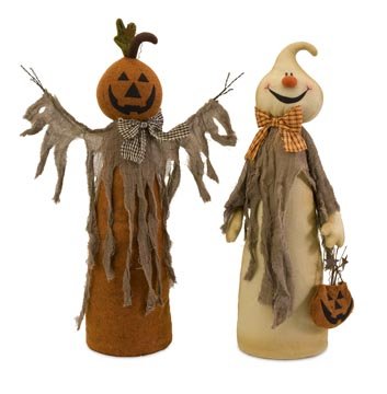 Set of 2 Spooky Halloween Standing Ghost and Pumpkin Decor 25" Overview