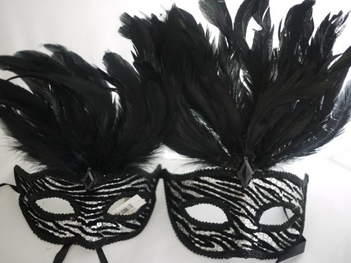 # This luxurious mask is made to be worn all night showing elegance and richness in a beautiful design# Perfect for a Halloween, Masquerade, Mardi Gras, Prom or New Years Costume Party# Elegant venetian style mask# Black fabric trim # White tiger stripe pattern with glitter decoration# Black diamond decor at front head # Black feather decoration# Features black feather and black comfort ribbonAlso available in other colors, please see our inventory.Available at Amazon