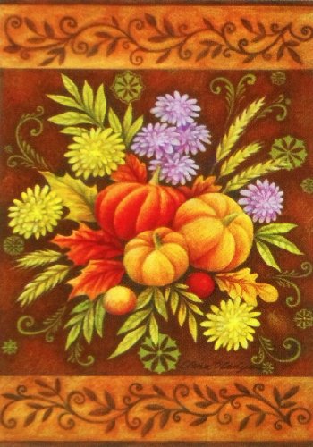 ** Welcome guests with a lovely Pumpkin Bouquet Tapestry Art Flag by Rain or Shine! Features an Autumn bouquet of flowers and pumpkins on a brown background that looks like a tapestry. Pretty colors, quality construction and resistance to fading make this flag a perfect addition to your Fall decor! * Fits standard pole. Pole not included. ~~**Available at Amazon